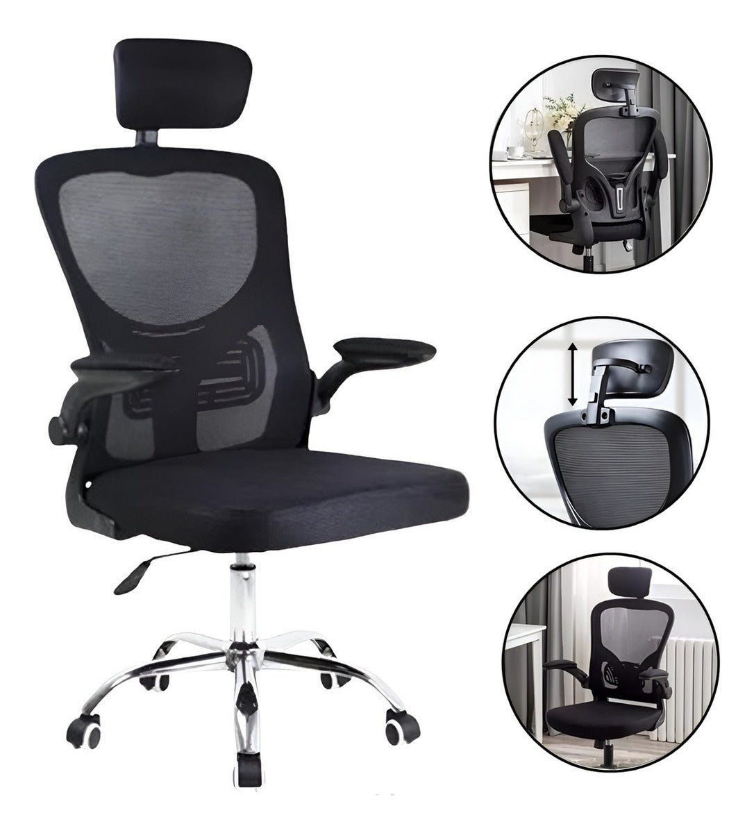 Cadeira De Escritorio Com Base Cromada Prizi Venice – Preta