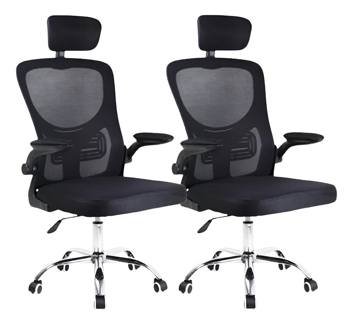 Kit 2 Cadeira De Escritório Giratória Preta Com Rodinhas Cor Preto