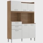 Armário de Cozinha Harmonia Demobile Amendola Branco: Organize sua cozinha com estilo e praticidade. Com 6 portas, 2 gavetas, espaço para micro-ondas e pés reguláveis. Confeccionado com materiais resistentes, é a opção ideal para um lar mais aconchegante.